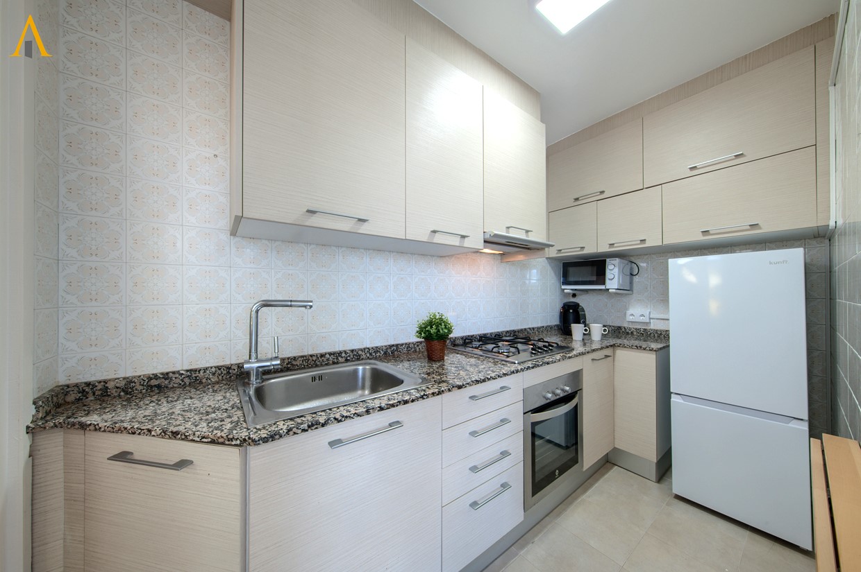 •Apartment located in the center of the Maritime District, with a master bedroom and access to the terrace, and a second bedroom with two single beds. The bathroom has a shower. The living room also has access to the terrace, which is equipped with awnings and furniture to enjoy pleasant moments outdoors. The kitchen is fully equipped with a gas stove, oven, microwave, refrigerator, and small appliances. The building has a communal area and a pool.