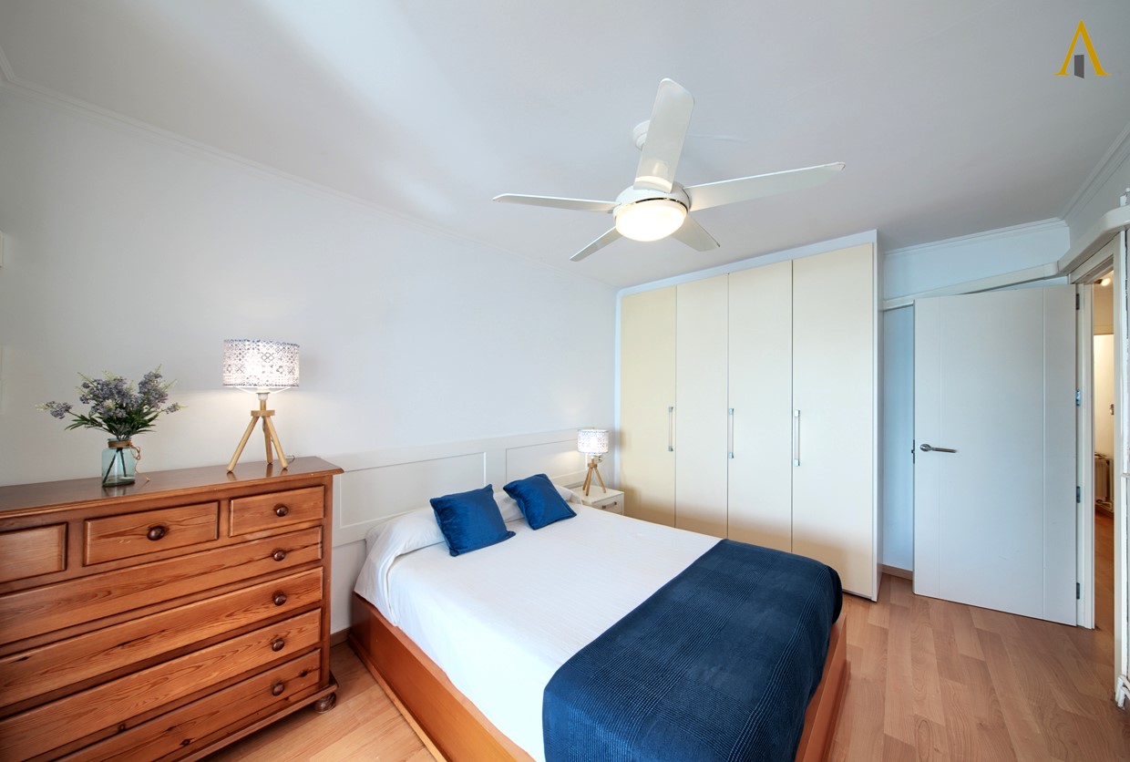 - Mediterranean-style beachfront house, the house has about 100 m² distributed over two floors. The ground floor features a living room with direct access to the promenade, an equipped office kitchen, and a small bathroom with a shower. On the first floor, there are three bedrooms: the master bedroom with a double bed, terrace access, and sea views, a single bedroom, a double bedroom, and another bathroom with a shower. The house has ceiling fans in the bedrooms. It also has Wi-Fi and heating. It is located next to a restaurant that, due to its terrace on the promenade, may partially obstruct the sea view from the ground floor.