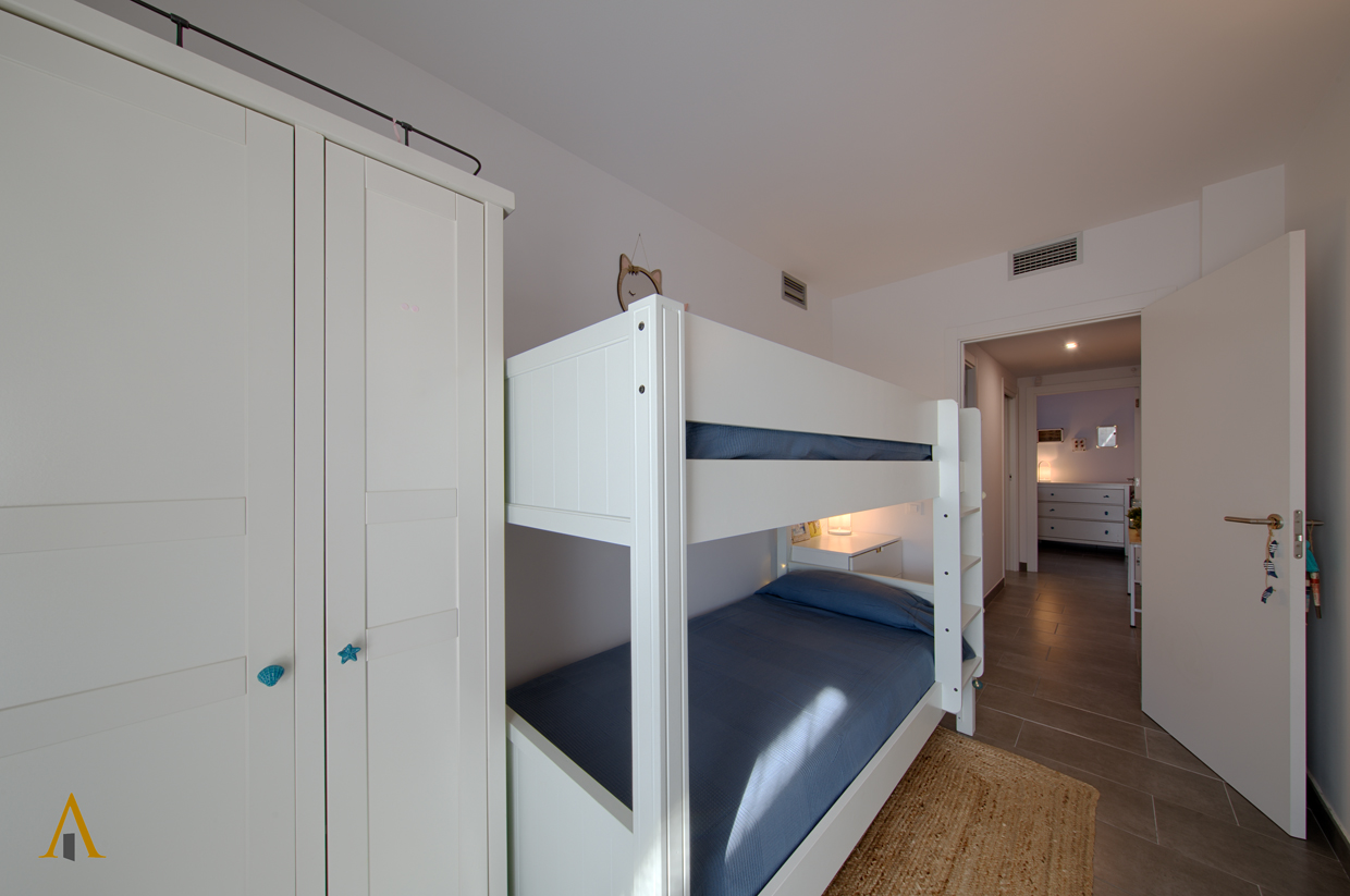 Discover a dream apartment: three spacious bedrooms, a stunning terrace, and everything you need to enjoy an unforgettable holiday. Located on a convenient ground floor, it features an elegant suite, a bedroom with bunk beds perfect for children, and a spacious room designed for pure relaxation.