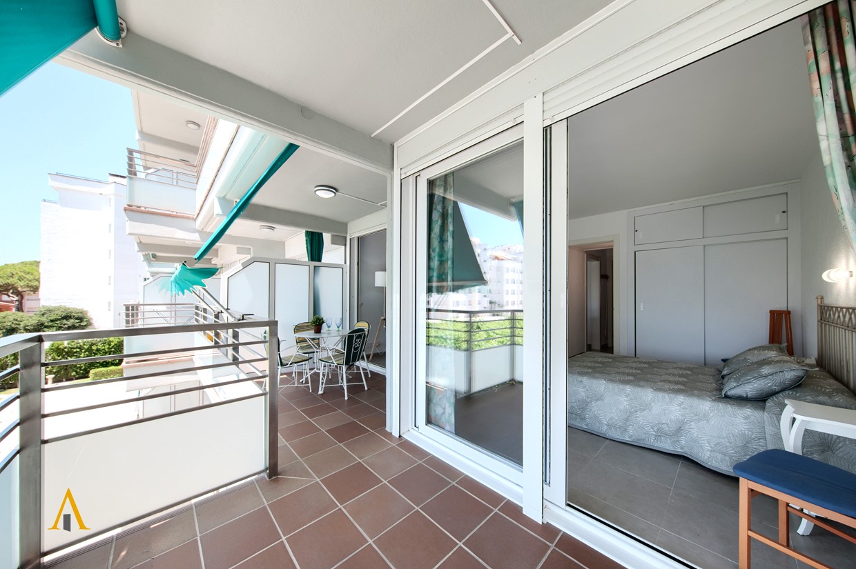 •Apartament situat al centre del Barri Marítim, amb una habitació principal i sortida a la terrassa, i un segon dormitori amb dos llits individuals. El bany és amb dutxa. El menjador també té sortida a la terrassa, que està equipada amb tendals i mobiliari per gaudir d’ agradables moments a l'aire lliure. La cuina està completament equipada amb encimera de gas, forn, microones, nevera i petits electrodomèstics. L'edifici compta amb una zona comunitària i piscina.