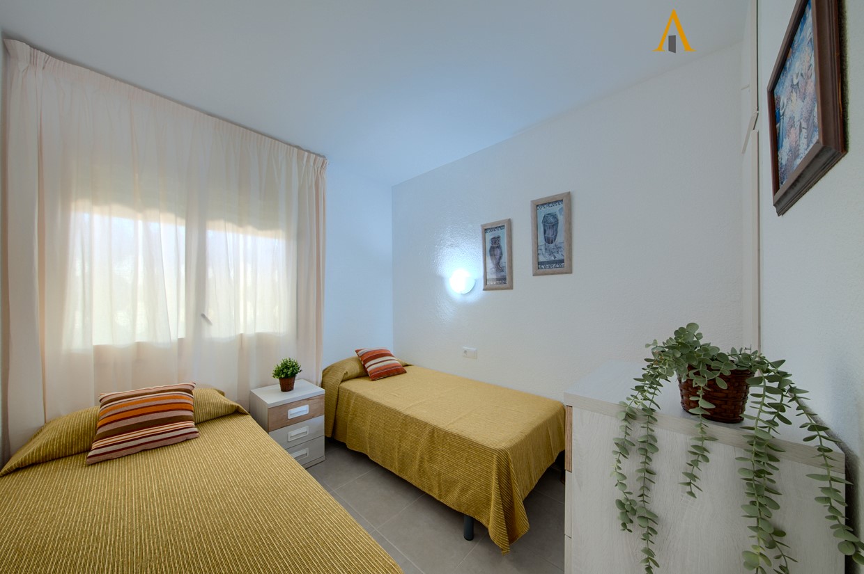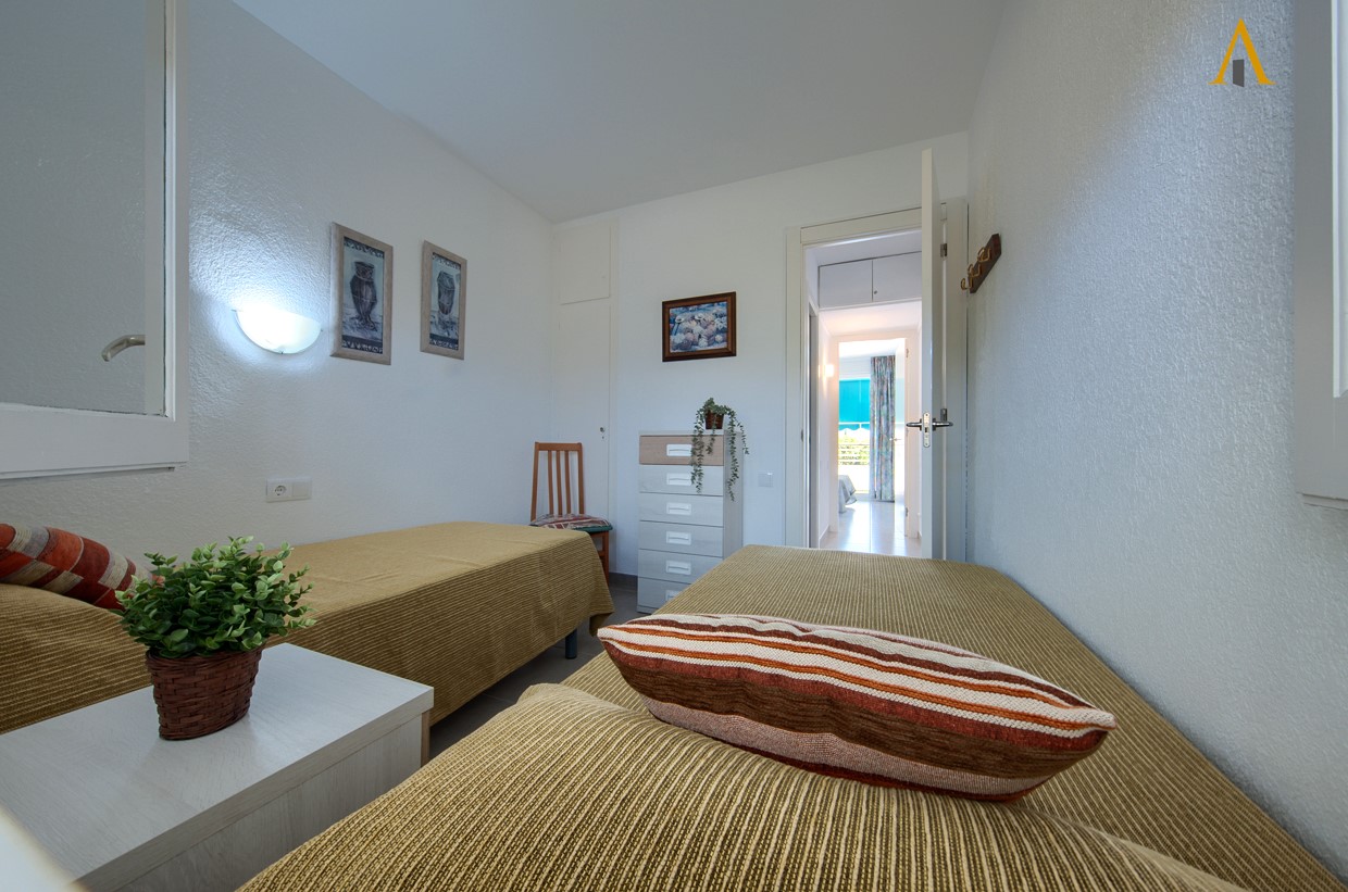 •Apartamento situado en el centro del Barrio Marítimo, con una habitación principal y salida a la terraza, y un segundo dormitorio con dos camas individuales. El baño es con ducha. El salón también tiene salida a la terraza, que está equipada con toldos y mobiliario para disfrutar de agradables momentos al aire libre. La cocina está completamente equipada con encimera de gas, horno, microondas, nevera y pequeños electrodomésticos. El edificio cuenta con una zona comunitaria y piscina.