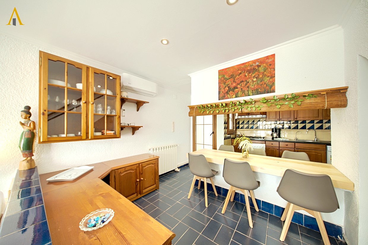 - Casita de estilo mediterráneo a pie de playa, la casa tiene unos 100m2 distribuidos en dos plantas. La planta baja cuenta con un salón de acceso directo al paseo marítimo, cocina office equipada y un pequeño baño con ducha. En la primera planta hay tres dormitorios, el principal con cama de matrimonio, salida a terraza y vistas al mar, un dormitorio individual, un dormitorio doble, y otro baño con ducha. La casa dispone de ventiladores de techo en los dormitorios. También dispone de Wifi y calefacción. Se encuentra al lado de un restaurante que por su terraza en el paseo, puede ocupar parte de la vista al mar desde la planta baja.
