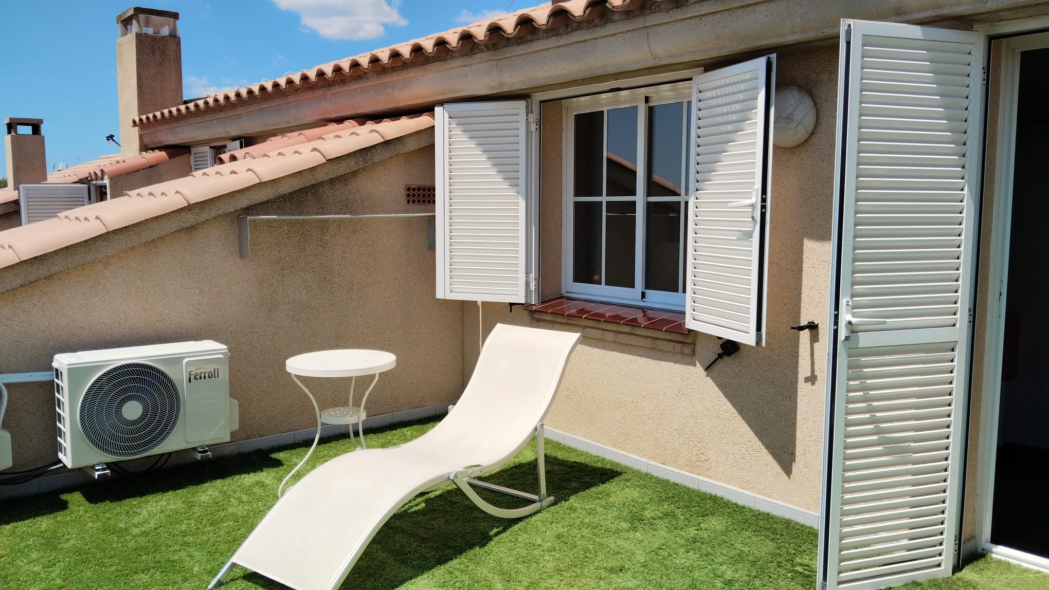 - Situada al poble, aquesta bonica caseta es troba envoltada d'una encantadora zona comunitària que ofereix molta tranquil·litat. La planta baixa disposa d'una cuina completament equipada, un acollidor saló-menjador i un pati privat amb una àmplia zona per menjar i descansar. Al primer pis es troben dos dormitoris amb llit de matrimoni i un bany complet. El menjador i les habitacions estan equipats amb aire condicionat per la seva comoditat. Disposa de wifi.
